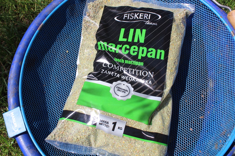 Do moich wiader bardzo często trafia zanęta marcepanowa. Nie zawsze mam czas na kilkudniowe nęcenie, dlatego sięgam po sprawdzoną zanętę. Marcepanowa zanęta z serii competition to mój pewniak. Liny to prawdziwe żarłoki. W chłodniejsze pory zanętę zubożam ziemią i dodaję mniej robactwa i kukurydzy, ale w cieplejsze dni do mieszanki dodaje nawet kruszony pellet i sporą ilość mięsa i przynęt roślinnych. Na moich akwenach bardzo dobrą przynętą są dwa ziarnka kukurydzy lub ziarnko gotowanego grochu, co eliminuje brania ryb drobnych, które często kręcą się przy zanęcie na lina. Z mięsnych linowych specjałów polecam połowę rosówki lub gnojaki. Te drugie są jednak często połykane przez okonie lub obskubywane przez mniejsze ryby. Wczesną wiosną, kiedy woda jest jeszcze zimna zakładam pęczek ochotek lub białe robaki podbite pinką.