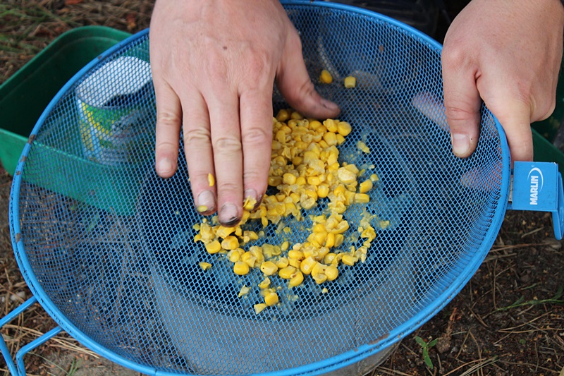 Zmiażdżona kukurydza na sicie. Płocie to lubią.